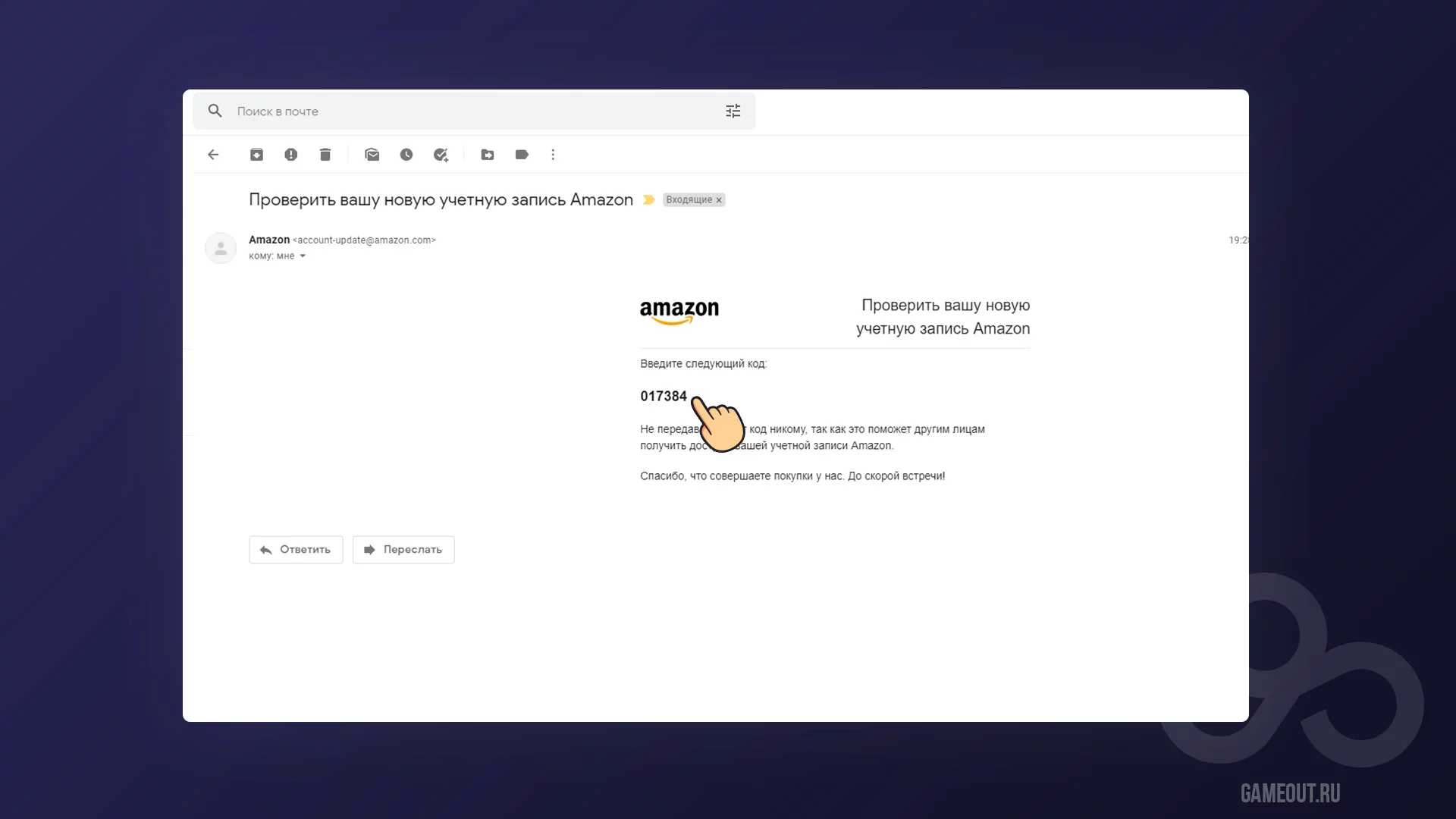 В письме будет написано 6 цифр, скопируйте их и переходите к следующему шагу.