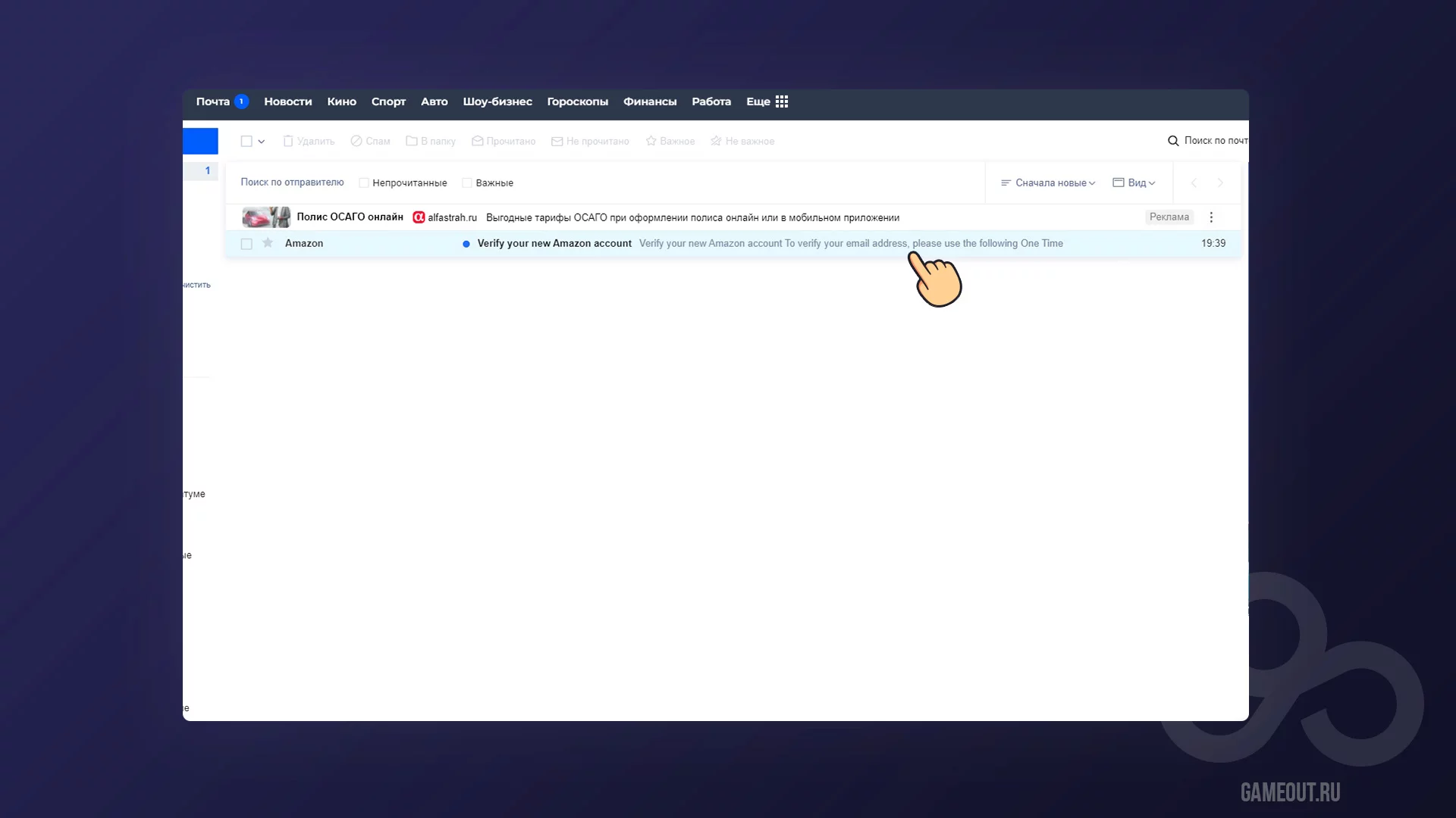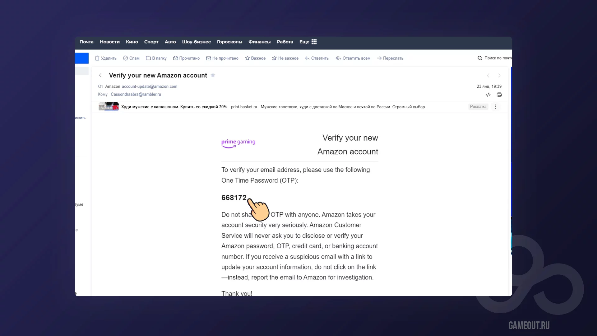 Найдите на почте письмо от Amazon с темой письма “Verify your new Amazon account” и откройте его.