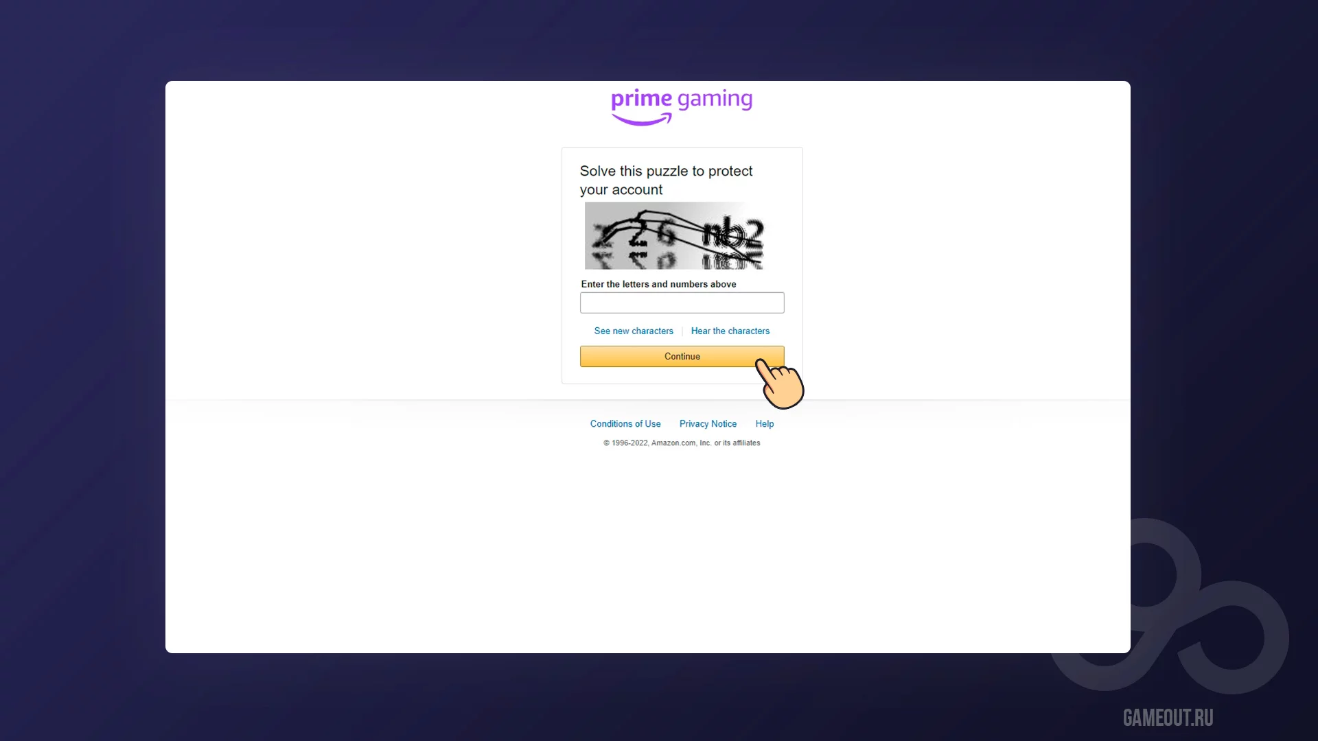 После ввода данных Amazon при регистрации аккаунта может запросить у вас решение капчи, один из видов этой капчи предоставлен ниже, вам потребуется только ввести буквы и цифры показанные на картинке, просто перепечатайте их в поле Enter the letters and numbers above и нажмите на кнопку Continue.