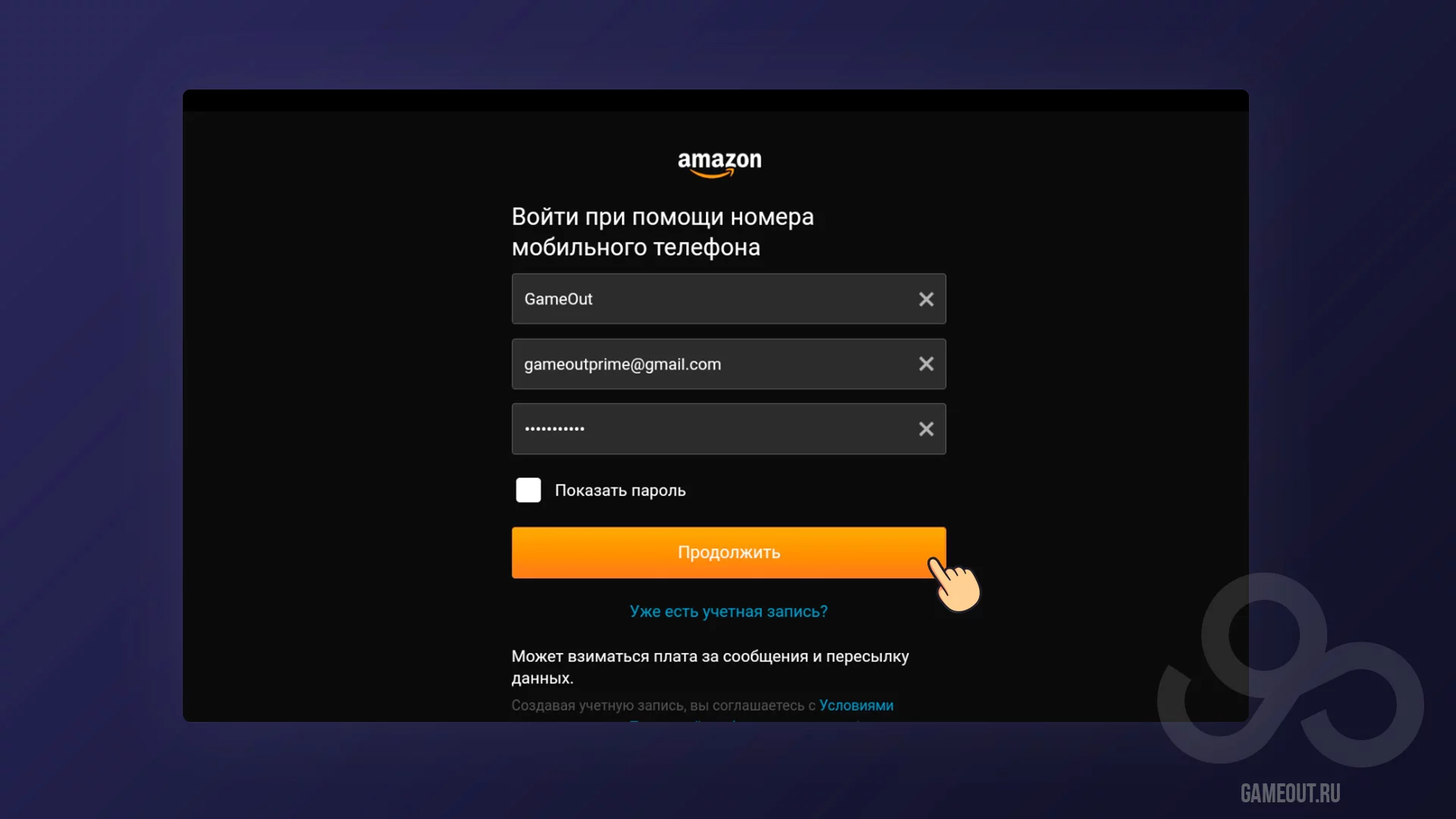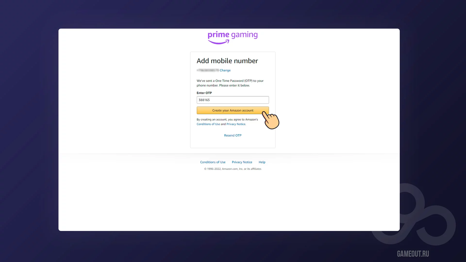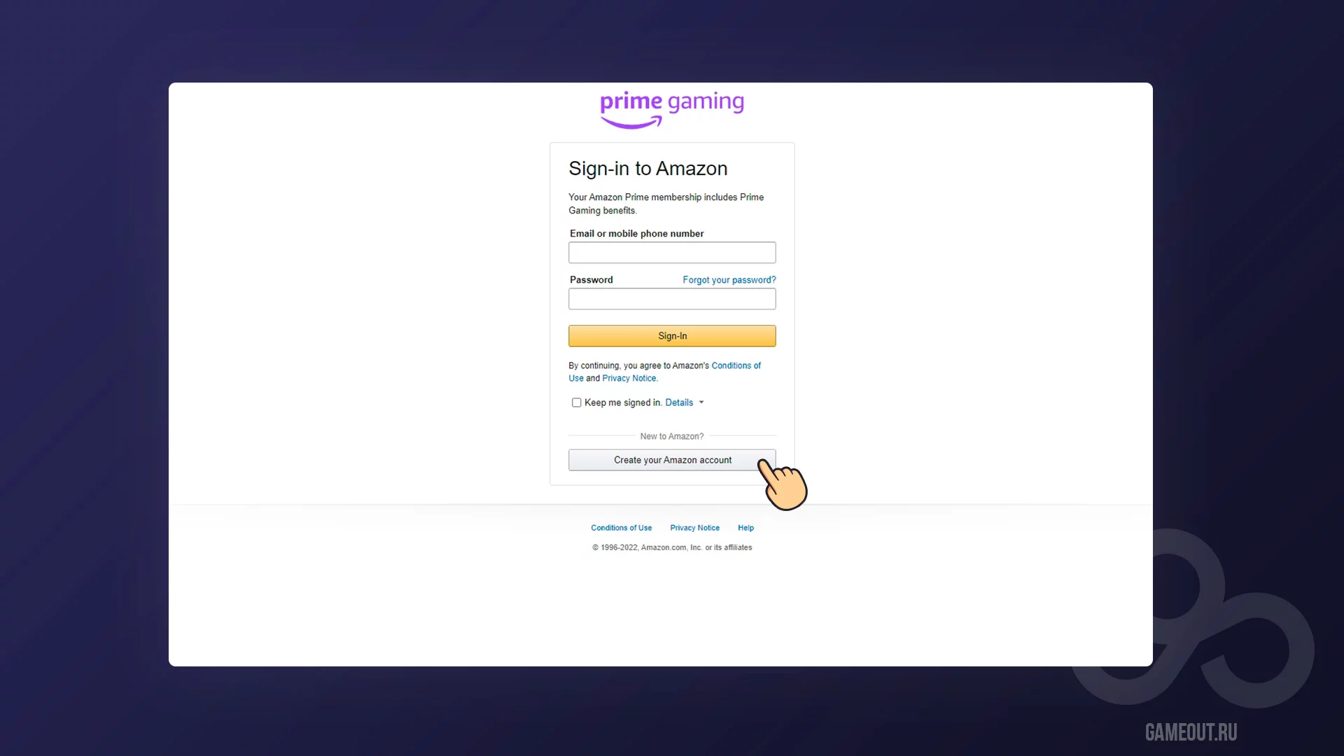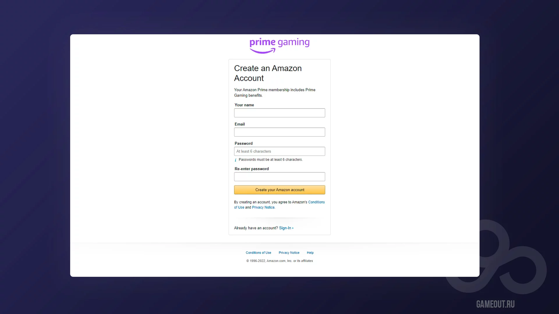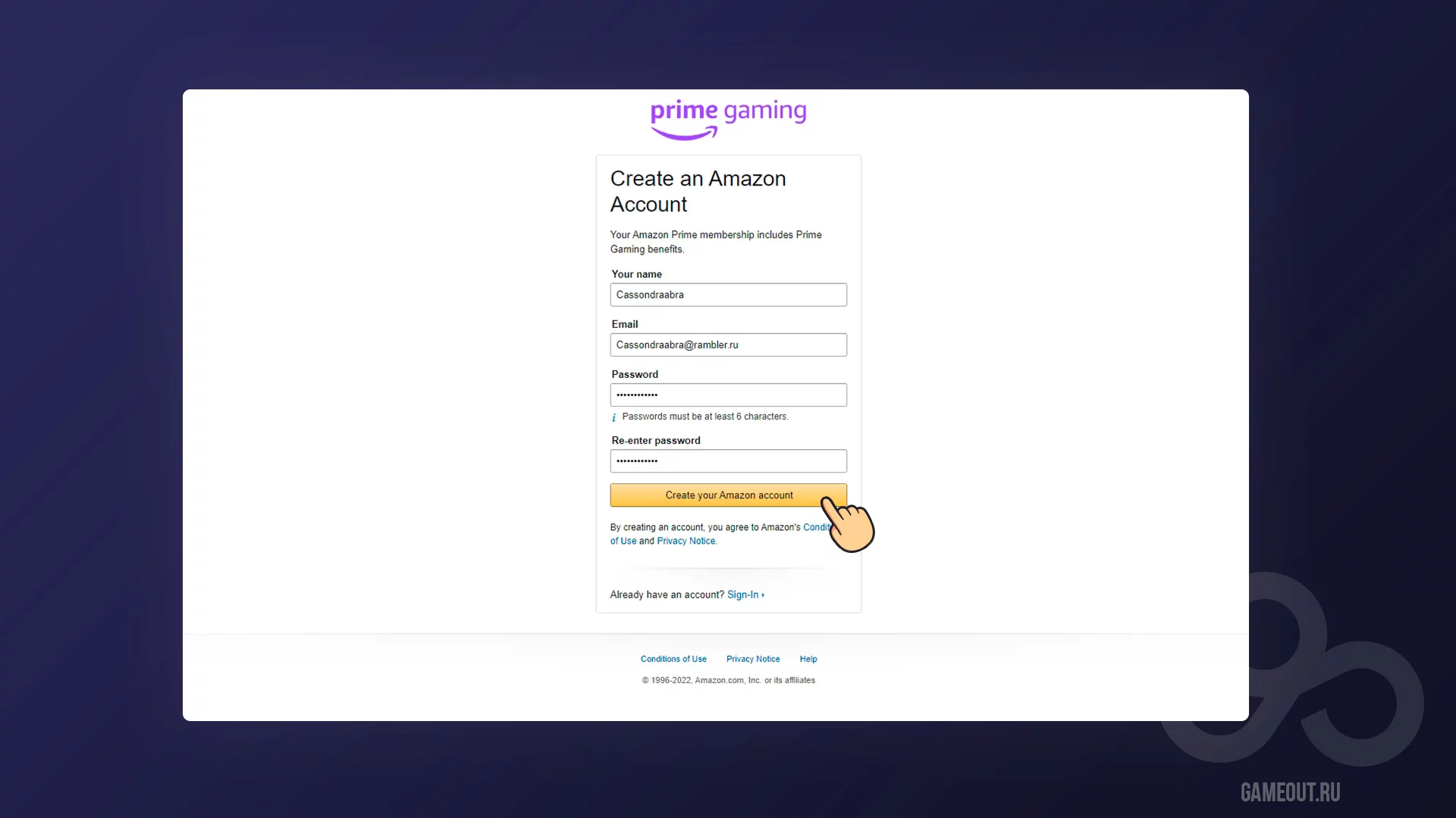 После проделанных действий при оформлении подписки прайм гейминг нажмите на кнопку Create your Amazon account.