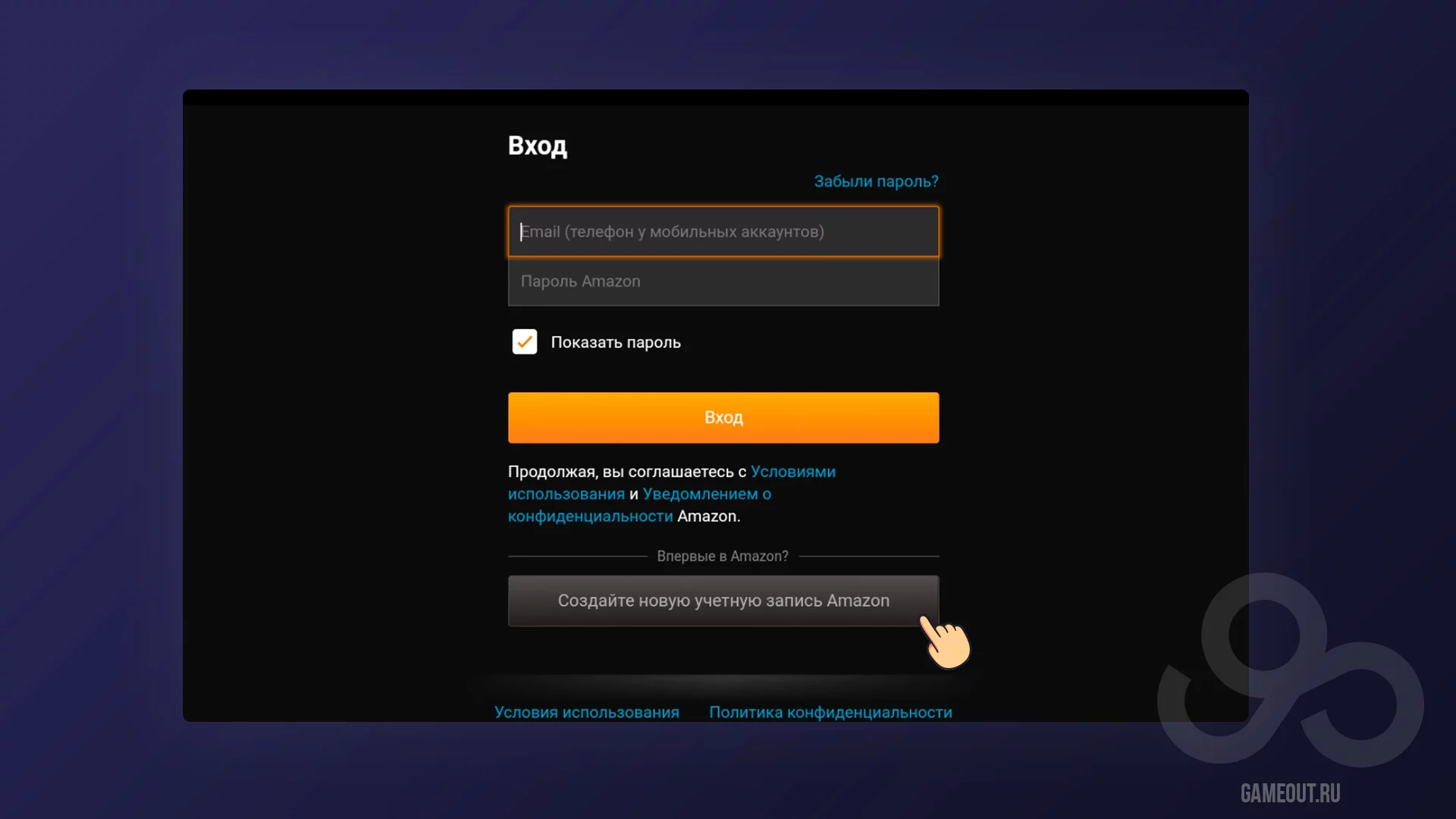 Если у вас ещё нет учетной записи Amazon, то необходимо произвести регистрацию аккаунта, для этого нажмите на кнопку Create your Amazon account.