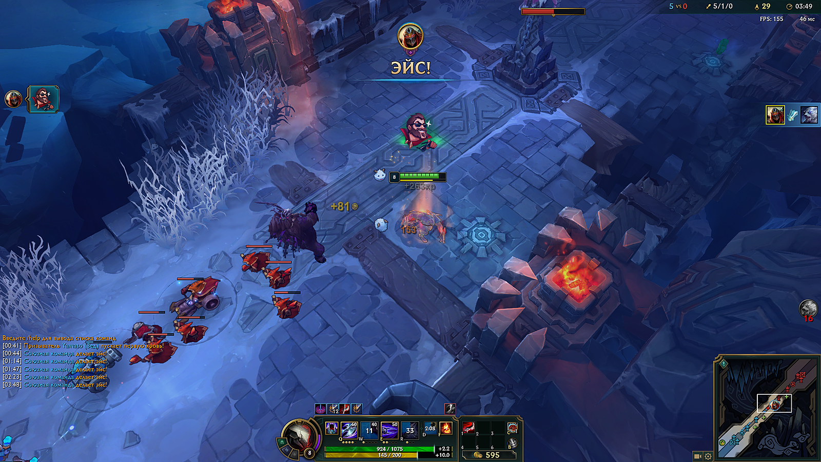 В LoL, в отличие от Доты и многих других киберспортивных игр, нет голосового чата. Общение ограничивается пингами на карте («Враг пропал с линии», «Опасность», «Я иду» и так далее), спамом эмоций и текстовым чатом. Последним никто особенно много не пользуется, ведь для этого нужно отвлечься от фарма и, например, отойти под вышку. И меня это полностью устраивает: сейчас мне хочется не разговаривать словами, а просто чувствовать чье-то общество. Совершенно нелепые человеческие потребности больше не получается игнорировать.