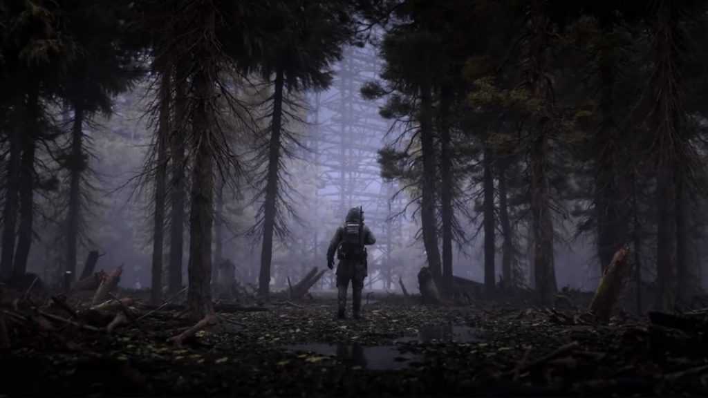 И финальная сцена – РЛС Дуга, таинственно возвышающаяся над лесом. И одинокий сталкер, с адекватной моделькой и добротной анимацией. Нет деревянности в его суставах, а винтовка на спине покачивается по своей отельной физической модели. Качественно. Добротно. Видно, что движок гораздо способнее былого X-Ray.