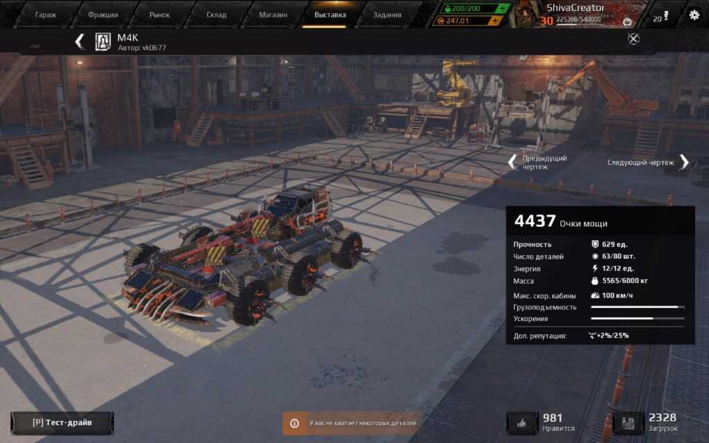 Игроки смогут собрать из запчастей собственный автомобиль, или воспользоваться готовыми схемами. Специально для тех, кто не готов к творческим экспериментам, доступна возможность приобрести чертеж боевой машины. Если же транспорт собирался самостоятельно, его необходимо будет опробовать на полигоне.