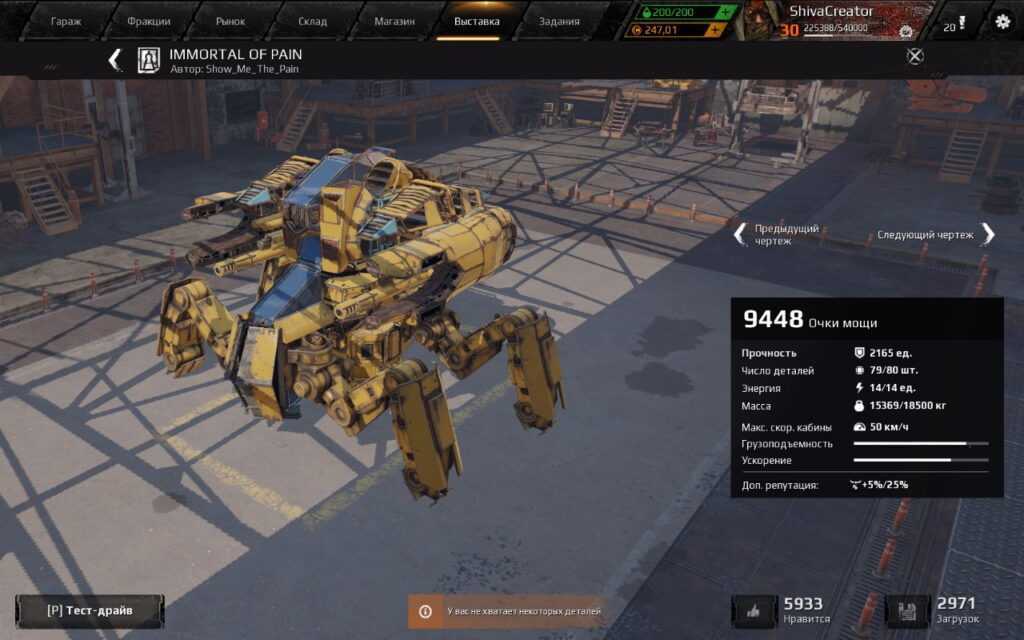 По мере заработка золота докупал новые детали. Здесь, например, уже используется кабина «Гарпия» и колеса «Заточка».