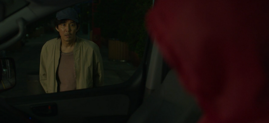На месте Сон Ки Хуна встречает микроавтобус, управляемый водителем в розовом комбинезоне и с маской на лице. Продемонстрировав отсутствие инстинкта самосохранения, герой забирается внутрь автомобиля, где его усыпляют специальным газом.