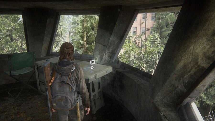 Поднявшись на стену у главных ворот Сиэтла, не спускаемся сразу с другой стороны. Вместо этого сперва поднимаемся по лестнице выше, на смотровую вышку. Берем карту со стола.