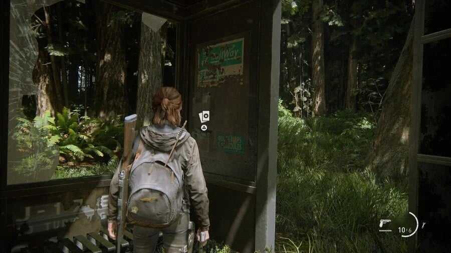 Приближаясь к Сиэтлу на лошади, Дина сообщит о появлении заброшенных автомобилей. Там будет заброшенная автобусная остановка с картой внутри нее.