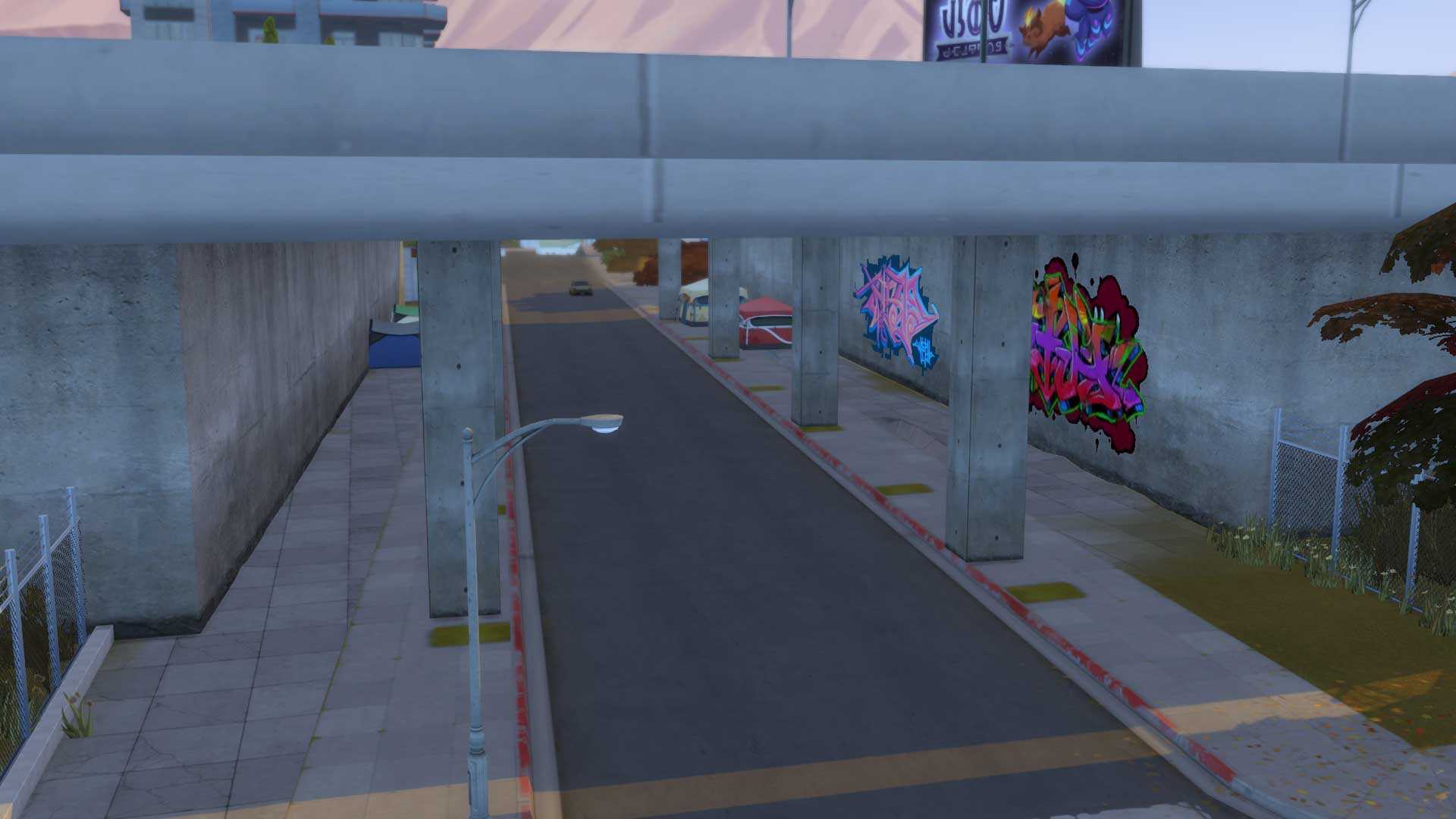 Лагеря, которые, скорее всего, созданы бездомными симами, расположены под этим подземным переходом. Так как Del Sol Valley базируется в Лос-Анджелесе, где бездомность является большой проблемой, можно с уверенностью предположить, что дизайнеры хотели включить прикосновение реальности.