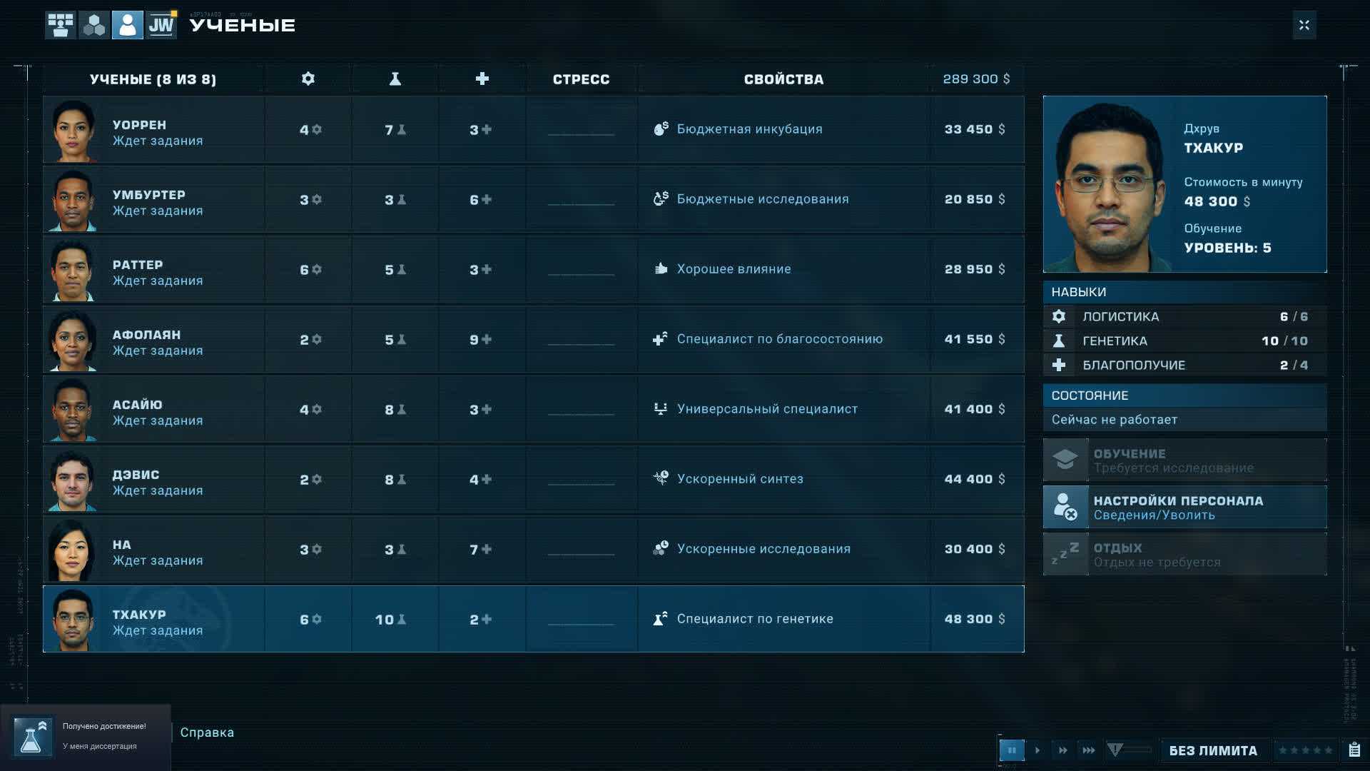 Список ученых — столько смог нанять только в песочнице, обычно их не бывает больше четырех.