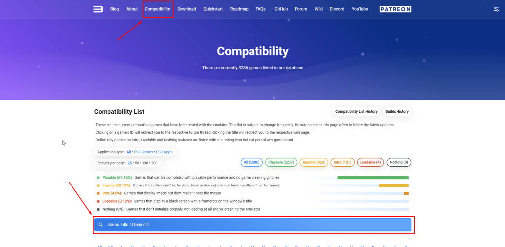 Первым делом определимся с версией. Русский язык (если он есть) имеют только Европейские версии (PAL, ES, EA). Чтобы узнать нужную нам версию, заходим на сайт RPCS3 в раздел Compatibility.