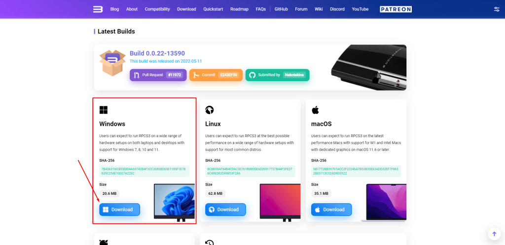 Загрузите RPCS3 на свой настольный компьютер / ноутбук, посетив эта ссылка из вашего браузера. Нажмите на ‘Скачать для Windows‘, когда вы перейдете на страницу загрузки.