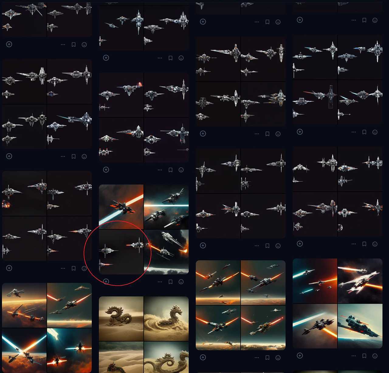 «starwars x-wing spacefighter flying from left to right in black space, armored core for answer, high quality» – по этому запросу нейросеть Midjourney сгенерировала несколько подходящих изображений, одно из которых попало в игру.