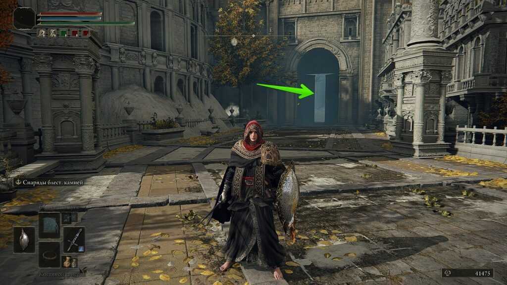 Перемещаемся к месту благодати «Зал с подъемником», затем выходим наружу и двигаемся в сторону замка Штормвейл.