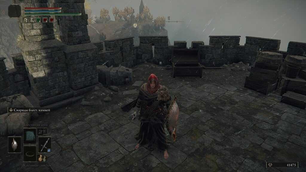 Чтобы отыскать первый предмет в данной локации, переместитесь к месту благодати под названием «Башня крепостного вала». Далее вам нужно забраться на крышу полуразрушенной башни, с которой можно спуститься в помещение и забрать ключик.