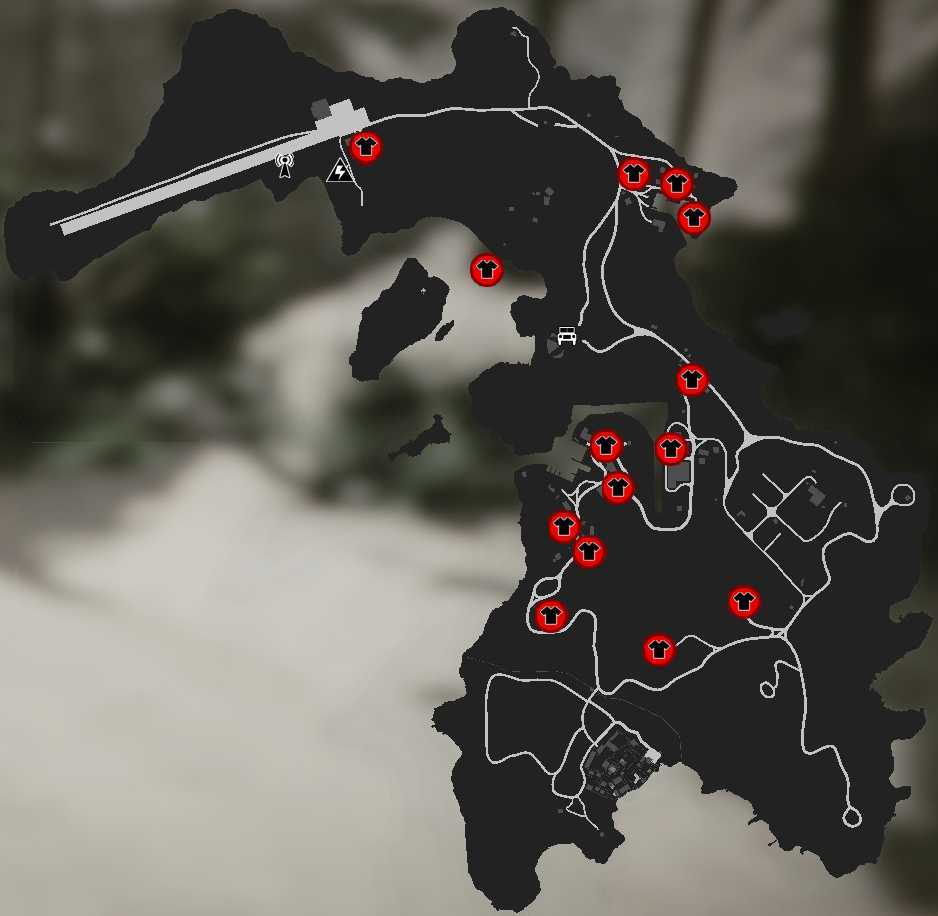 - Одежда охраны. На острове хоть и находится несколько ящиков с одеждой, но команда из четырех человек может переодеться по очереди, используя один ящик. Вас перестанут замечать камеры наблюдения и некоторые охранники, если находиться в их поле зрения непродолжительное время;