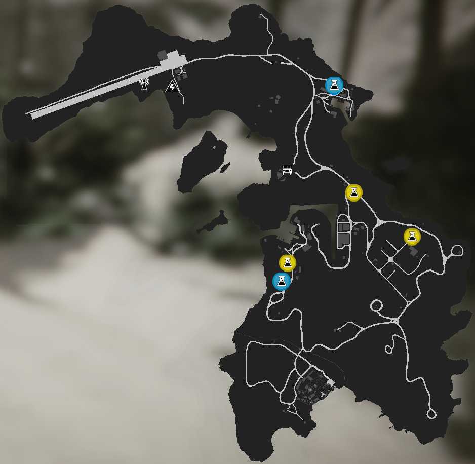 - Ядовитый порошок и водонапорная башня. Необходимы для того, чтобы отравить водоснабжение острова, тем самым, значительно снизив точность стрельбы охранников.