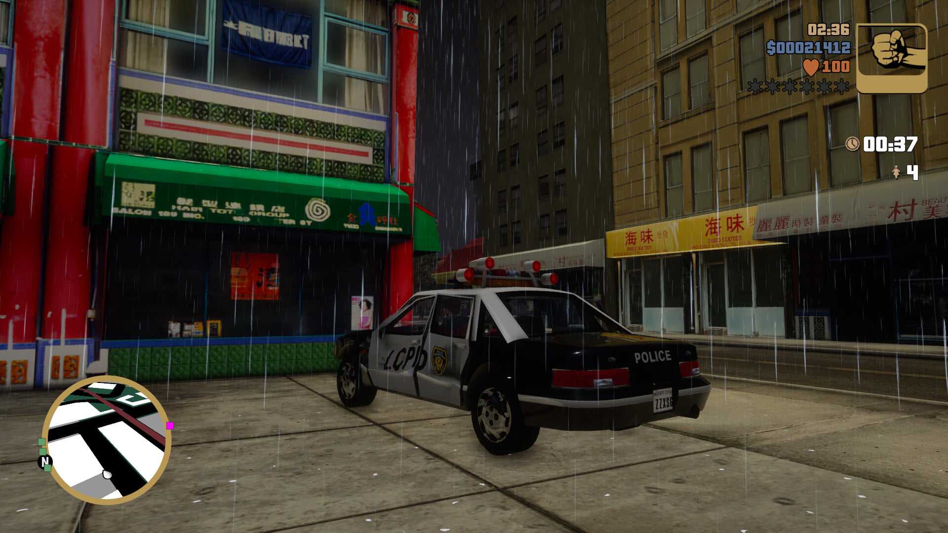 GTA III – очень темная игра, и на первый взгляд кажется, что контрастность цветокоррекции ремастера идет ей на пользу. Картинка напоминает нуарный комикс с глубоким черным цветом и острыми контурами.