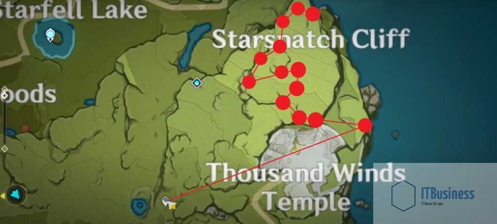 - Телепортироваться в Долину звездопадов, к западу от Храм Тысячи Ветров.