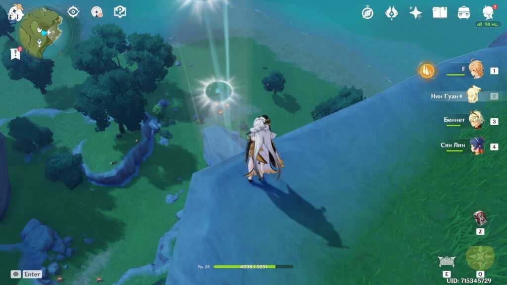 1. Если вы едете со стороны Мондштадта, вы увидите два дерева справа от вас. Анемокулус парит в воздухе между деревьями. Прыгайте со скалы поблизости, используя планер, чтобы добраться до него.