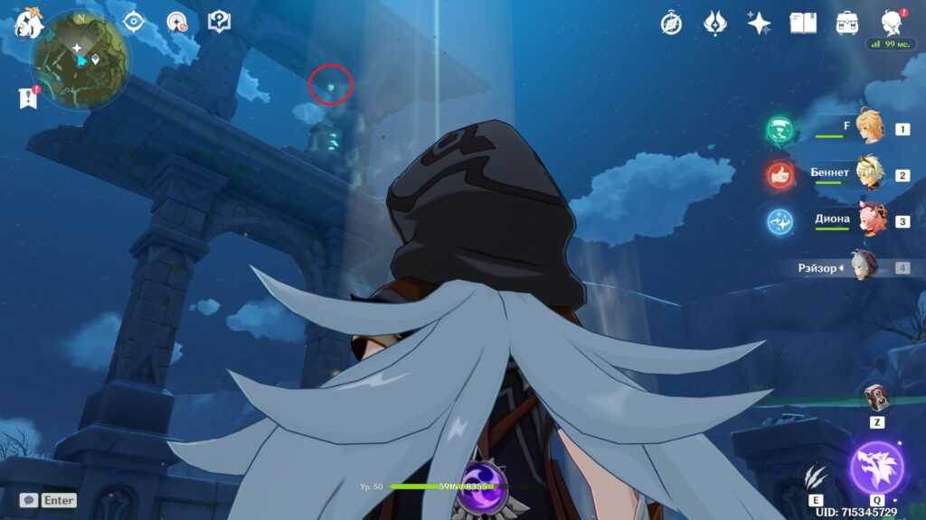 5. Видите большой столб с сундуком наверху? Анемокулус находится на краю обрыва прямо рядом с ним.