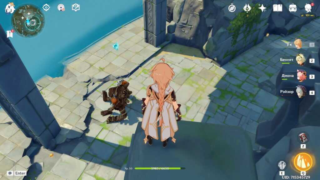 В центральной части обозначенного водоёма парит Геокул. Используем ледяную способность Кэйи, чтобы проложить себе путь к середине притоки;