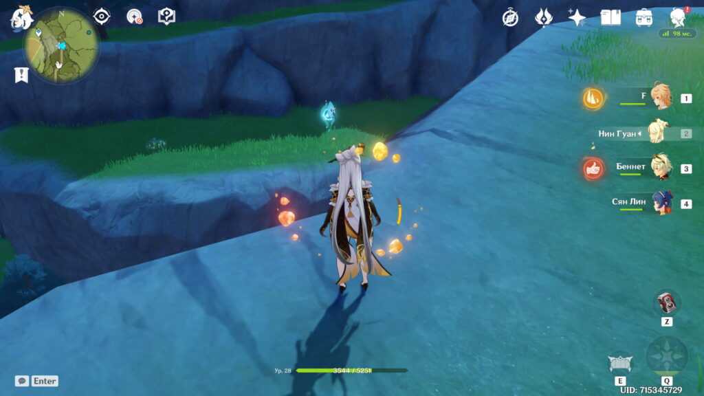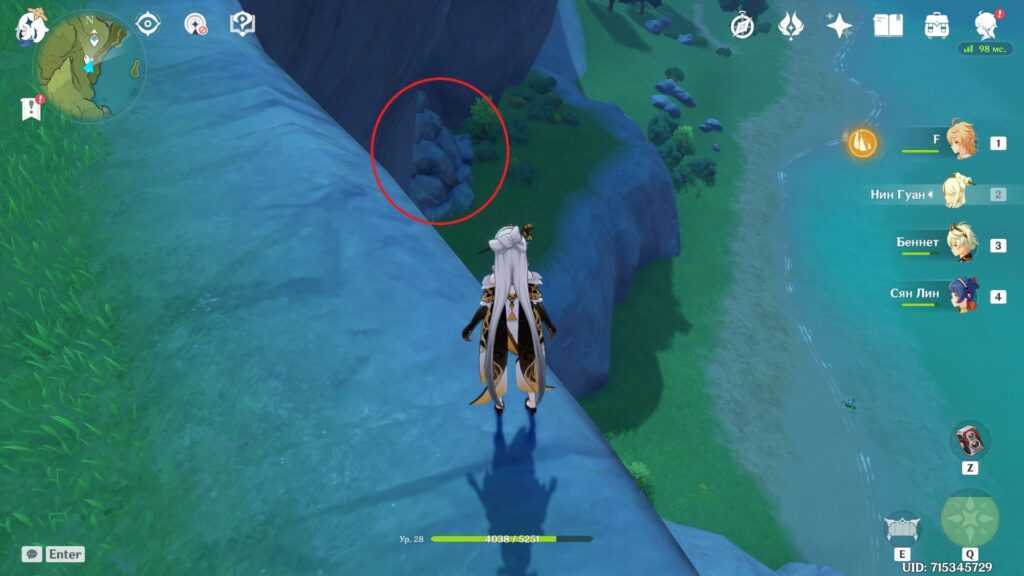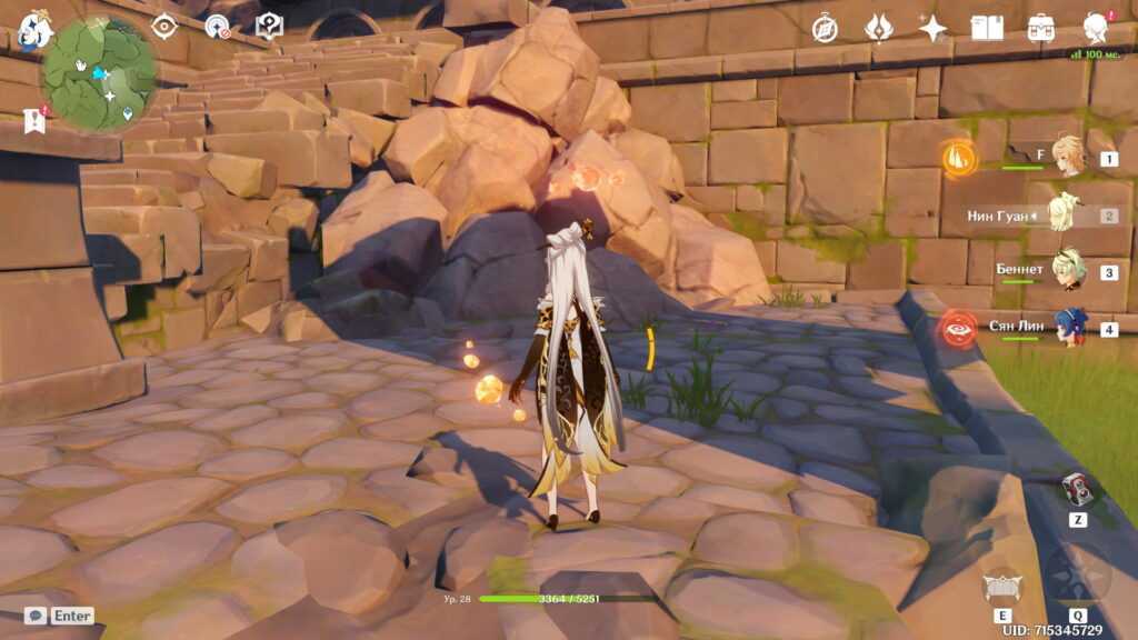 От Статуи Семи Архонтов следует выбрать южный путь по горе, где вскоре можно будет отыскать парящий элемент. Потребуется применить способность стихии Земли или же планер;