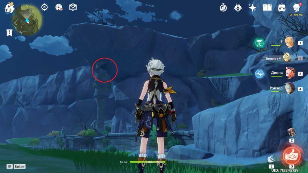 - Начиная с самой северной локации, Анемокулус сидит на подножие утеса в Северо-западный горный хребет Штормоносцев. Но сначала вам нужно отправить Анемослаймы что его окружают.