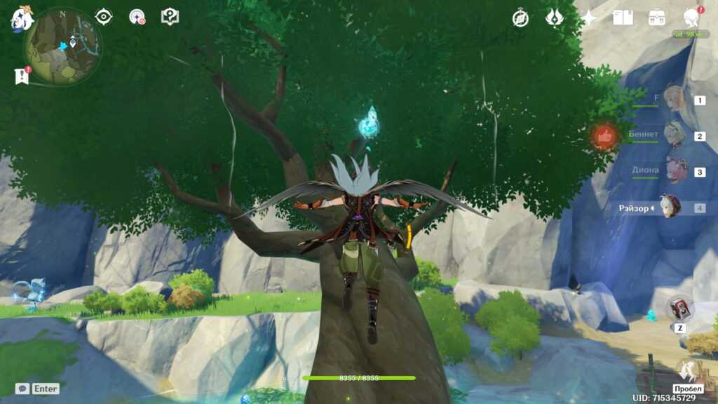 - Направляясь к восточному горному хребту, парит анемокулус. среди рощи возле башни, на который можно подняться, чтобы получить хорошую стартовую точку для скольжения.
