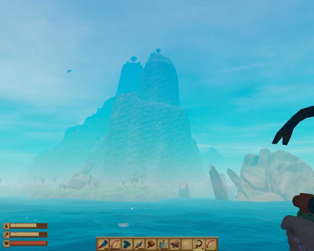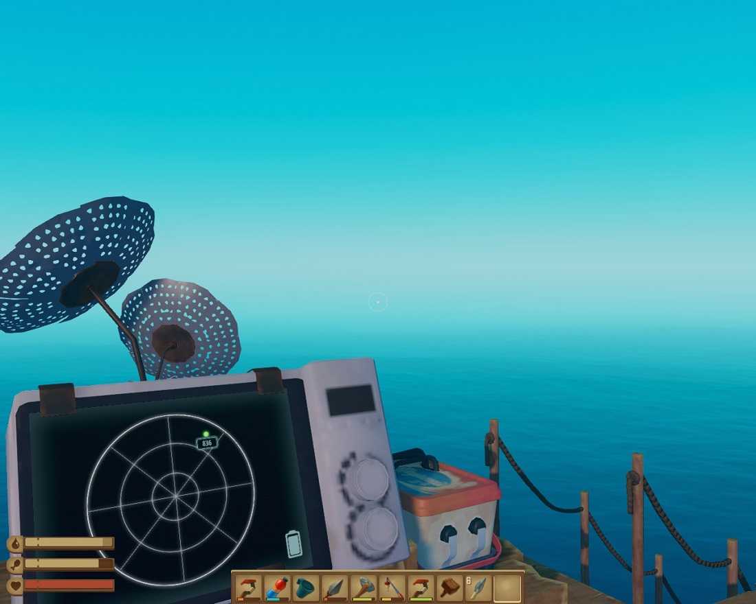 Чтобы добраться сюда, используйте радиоприёмник и антенну. Рецепты таких предметов спрятаны в случайных бочках, которые можно отыскать в океане. Когда нужные материалы будут получены, вам останется лишь правильно разместить антенны. В качестве ориентира используйте индикатор зелёного цвета на экране приёмника.