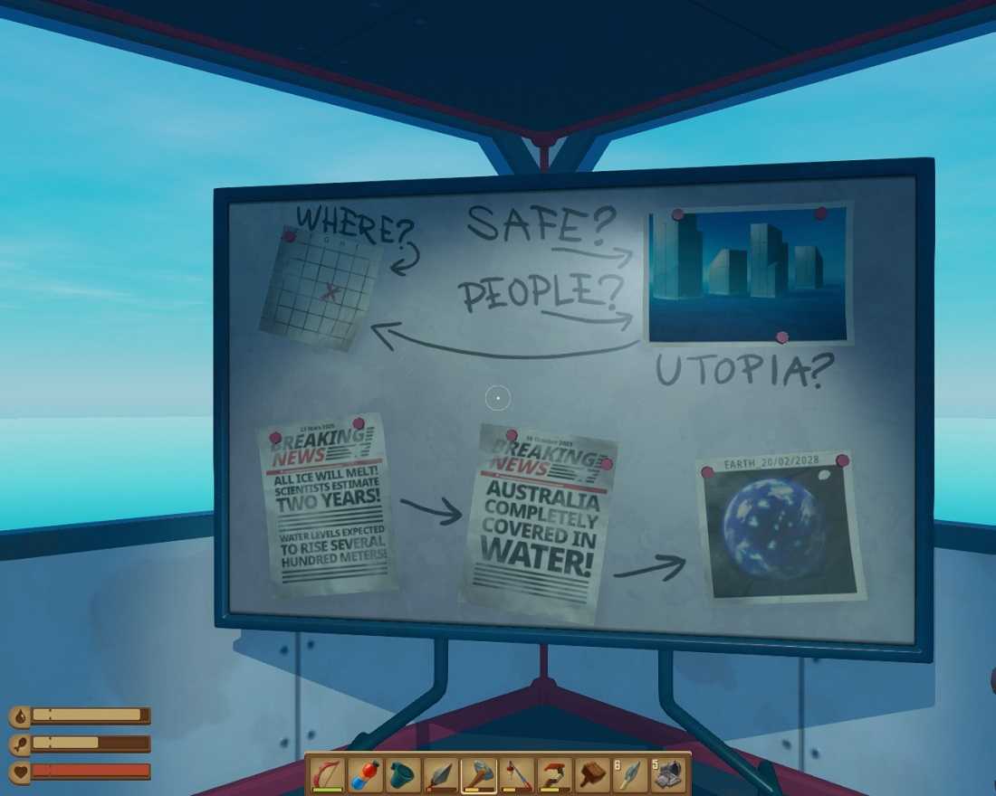 Игрок сможет изучить печатные платы и батареи на исследовательском столе (Research Table). Как только на плоту появятся утилизатор и заряженный аккумулятор, можно будет приступить к переработке лишнего мусора.