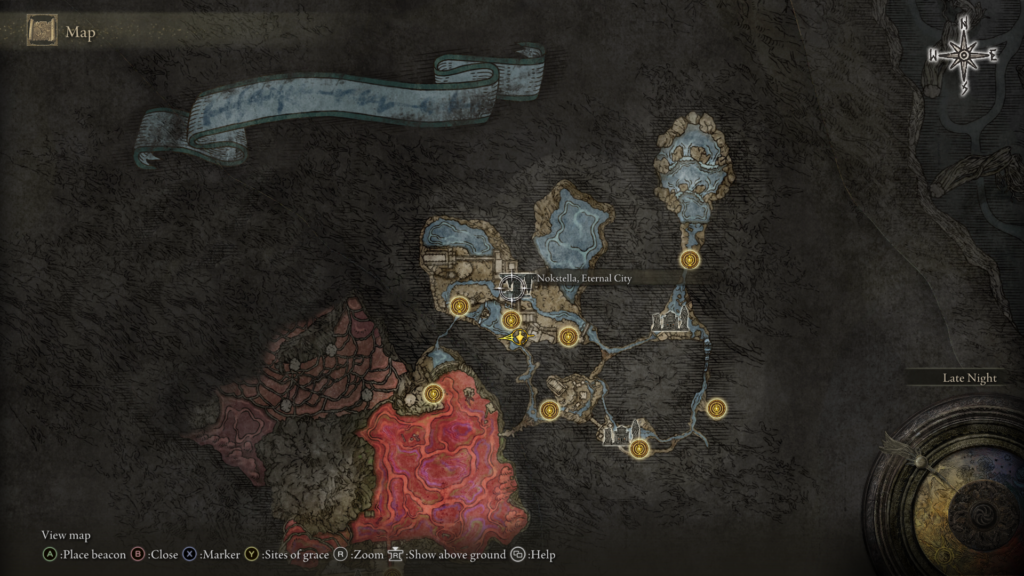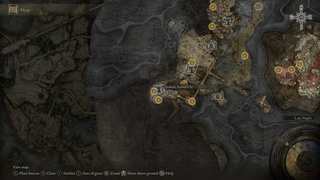 - Отправляйтесь в Форт-Хейт-Уэст в Туманном лесу и следуйте по расщелине, образованной падением метеорита, пока не доберетесь до Вечного города Нокрон .