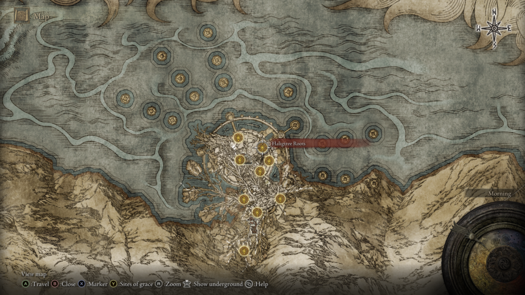 Elphael, Brace of the Haligtree: В секретной зоне доберитесь до места благодати Haligtree Roots, затем поднимитесь на лифте на кладбище. Находится на могиле в склоне холма.