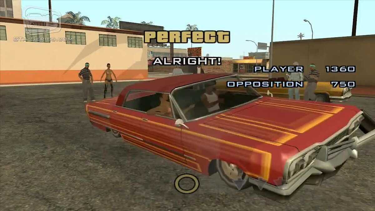 В одной из миссий Свита надо взять тачку, которая может подпрыгивать на рессорах (гидравлику можно поставить в некоторых моддинговых гаражах) и отправиться на соревнование к вокзалу в Лос Сантосе. У многих не получается пройти эту миссию. Советую в настройках управления изменить клавиши, которые управляют подскоками. По умолчанию это клавиши на дополнительной клавиатуре: Доп. 2, Доп. 4, Доп. 6, Доп. 8, они достаточно непривычны и трудно к ним приспособится. Поставьте управления подскоками на стандартные клавиши управления курсора (те, которые со стрелочками), и неотрывно следите за кружочком посредине экрана, как только стрелочка попадает в кружок, жмите аналогичную стрелку на клавиатуре. Это очень просто. Когда вы пройдете эту миссию, то вы сможете участвовать в этих соревнованиях, когда захотите. Войдите на красный маркер, около стоящего рядом с этим местом (рядом с вокзалом в Лос Сантосе) человеком и соревнования начнутся! У многих не получается набрать нужное количество очков вот некоторые советы по этому поводу: Модьте свою тачку, чем она солидней выглядит, тем больше очков будут давать. Жмите на клавиши управления подскоками чуть после попадания стрелки в кружок. Можно вообще не смотреть на кружок, а смотреть только на стрелки, слушая ритм музыки и нажимая в ритм.Ну и совсем радикальный способ: с помощью программы ArtMoney увеличьте количество своих очков до 3000, дождитесь окончания конкурса и миссия пройдена!