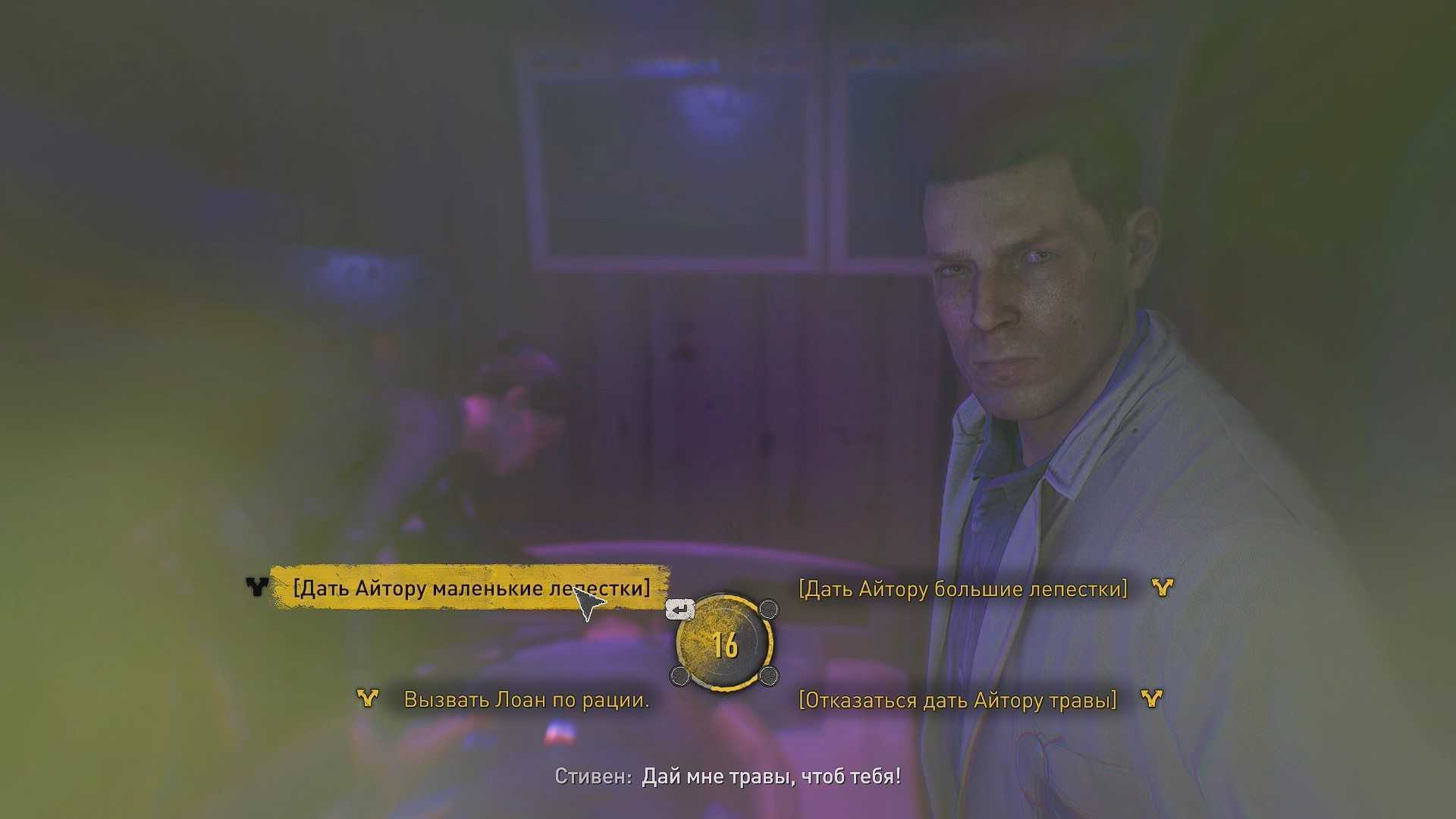 На деле же получилась привычная по некоторым играм Ubisoft система. В каждом районе есть ключевый объект, например, электростанция — захватив её, мы можем передать её либо миротворцам, либо выжившим. В первом случае на улицах появятся полезные ловушки для зомби, во втором — больше приколюх для паркура, всякие трамплины и матрасы, чтобы было не больно падать с крыш. Что одно, что другое — ну такое! Кое-кто в зависимости от наших решений, конечно, может погибнуть или выжить, но речь всегда об очень второстепенных персонажах. Впрочем, среди них есть интересные личности, возможно, их судьба будет вам небезразлична.