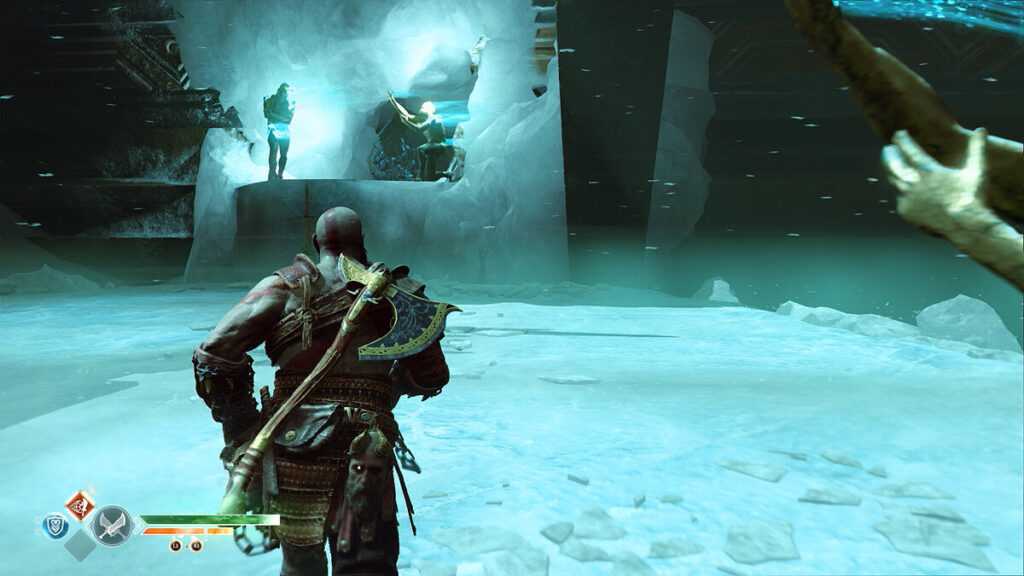 Старайтесь почаще использовать баффы на ярость и здоровье для Кратоса, без которых с Сигурн не справиться. Командовать Атреем в этом сражении будет куда тяжелее, да и действовать валькирия станет стремительнее с каждой отнятой единицей ХП.