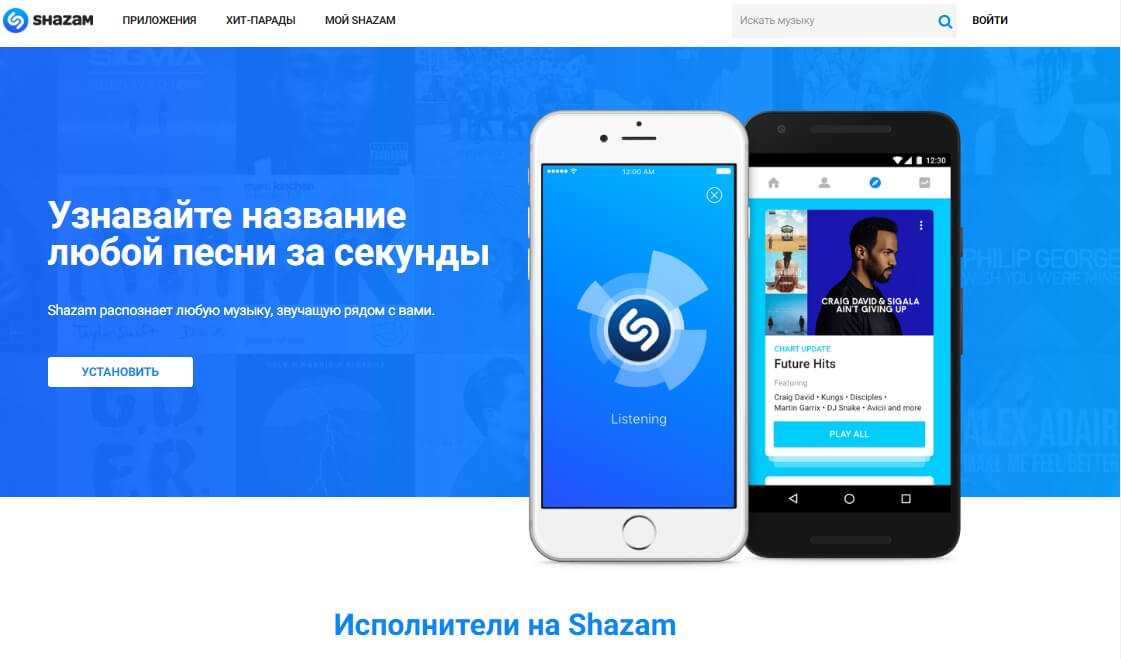 Если у Вас в телефоне есть песня, название которой Вы не знаете, но хотите выяснить. Или просто хотите узнать, кто исполняет эту песню, есть отличная программа для смартфонов — Shazam. Эта программа позволяет определить исполнителя очень многих песен, так как имеет обширную базу для сравнения. Работать с shazam проще простого.