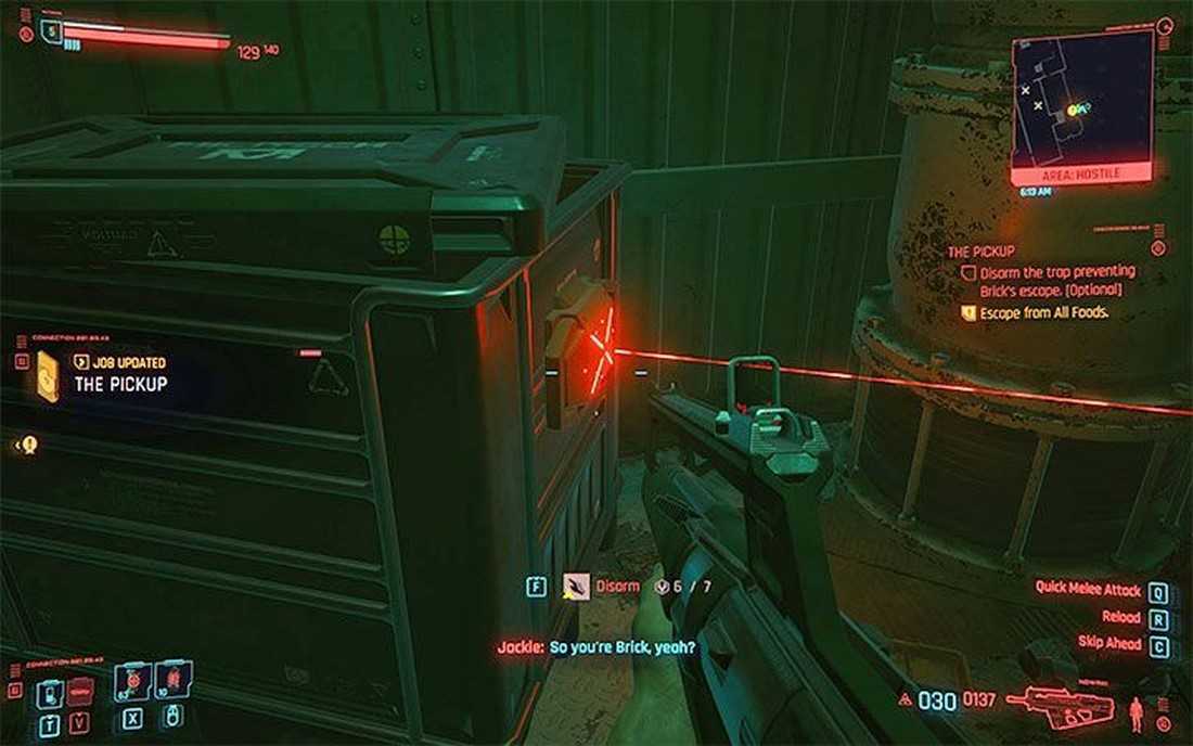 На столешнице слева от входа во вторую комнату лежит детонатор. Не активируйте его, иначе Брик погибнет. Вместо этого обезвредьте детонатор. Вернитесь через дверь в комнату Брика и взаимодействуйте с клавиатурой слева, чтобы ввести код. Пообщайтесь с Бриком. Скажите, что он вас должник, и тот пообещает прикрыть Ви, если когда-либо встретится с ним вновь. Но по сюжету игры с ним я больше так и не сталкивался. Возможно, с Бриком связано какое-то побочное задание?