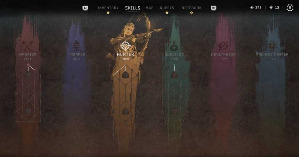 В Horizon Zero Dawn представлено разветвленное древо навыков, которое концептуально практически не отличается от принятых стандартов жанра. А если вы знакомы с RPG, то наверняка знаете, что от прокачки героя зависит сложность прохождения: неправильно выбранные навыки создадут проблемы, а грамотное распределение талантов, наоборот, упростит задачу.