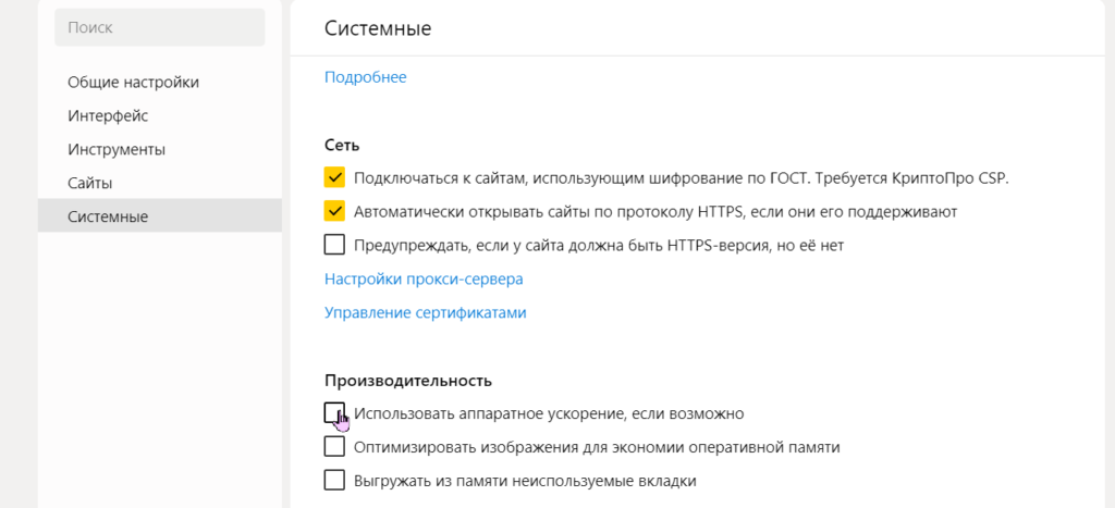 - Отключить аппаратное ускорение