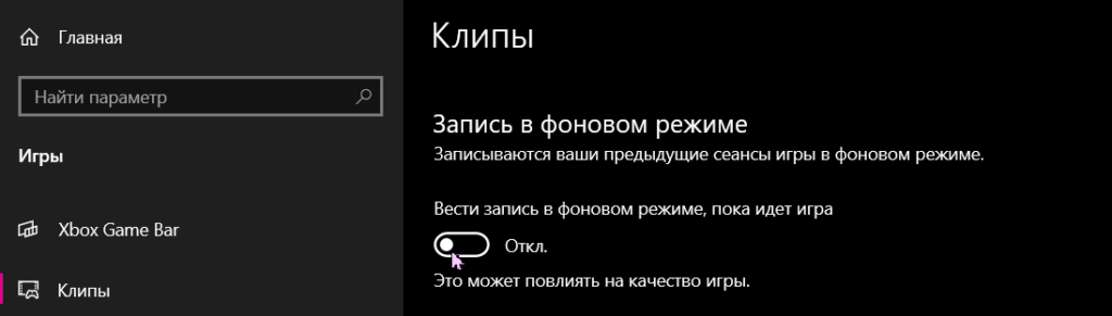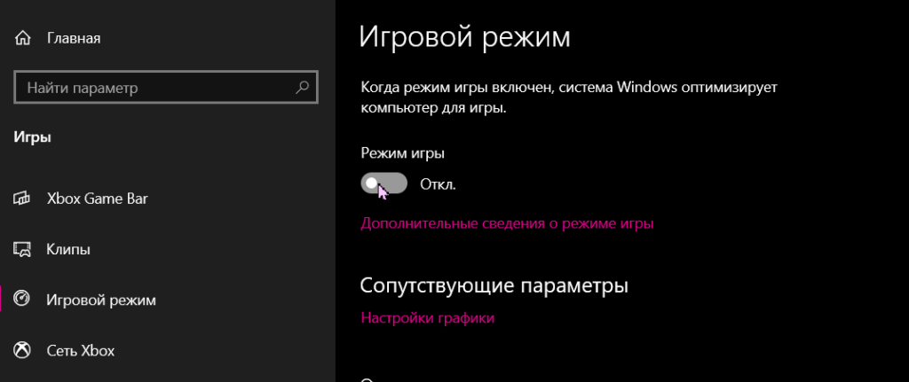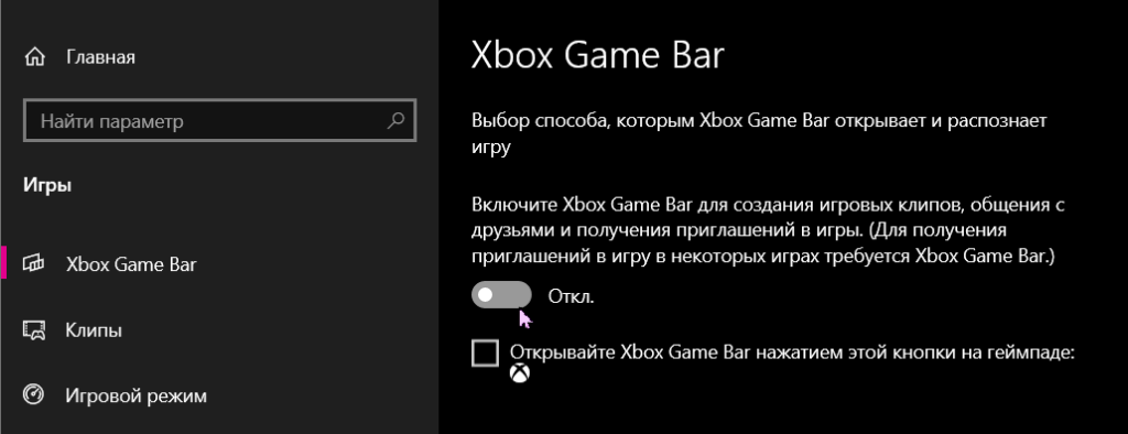 - Отключить игровые функции Windows 10