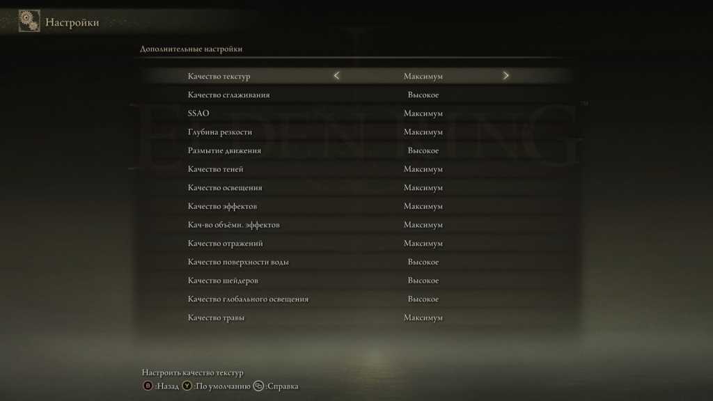 Такие параметры как «Качество травы» и «Качество сглаживания» могут сильно повлиять на общее количество отображаемых кадров. Ниже мы описали все графические параметры в Elden Ring.