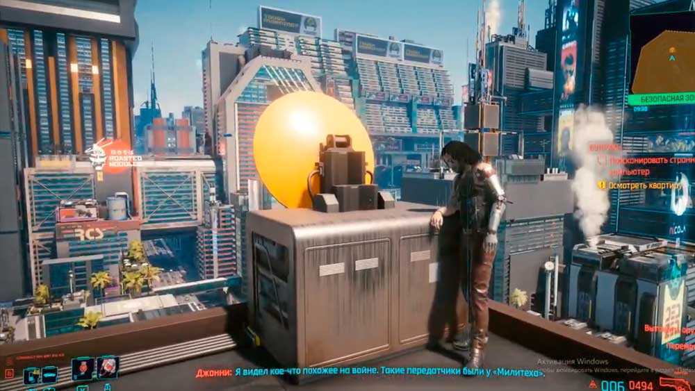 Выходим на крышу. Провода в квартире Параллесов ведут на крышу. После сканирования подымаемся по лестнице, отодвигаем люк и вылазим на верх дома. Подходим и сканируем к установленной спутниковой тарелке. После диалога с Джонни идем выслеживать и догонять черный шпионский фургон.