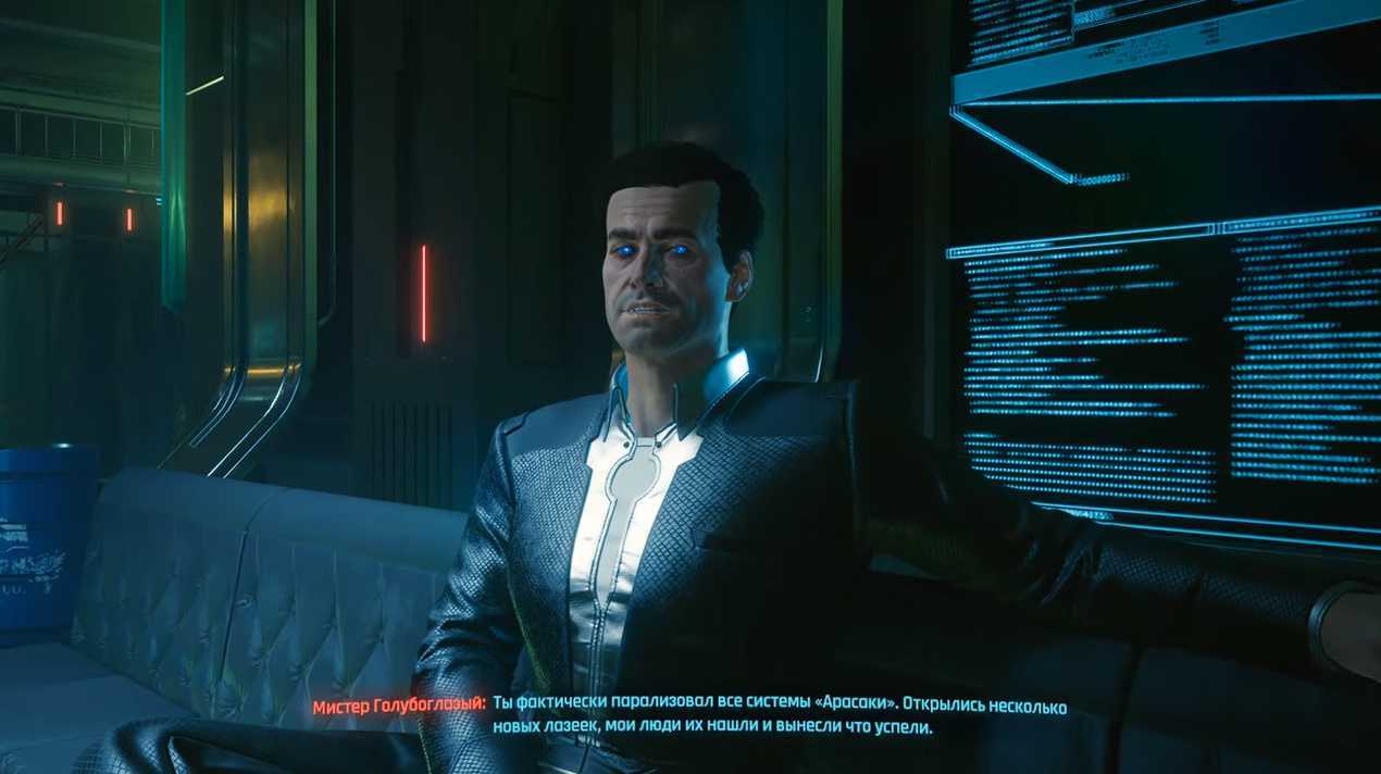 Так что там с полетами в космос? В одной из концовок Cyberpunk 2077 Мистер Голубоглазый нанимает Ви для ограбления космического казино.