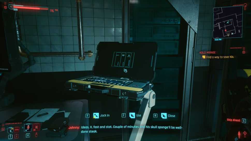 - Используйте компьютер рядом со стулом Никса: вам нужно будет пройти мини-игру Breach Protocol, но в случае успеха это спасет и Никса, и кибердек.