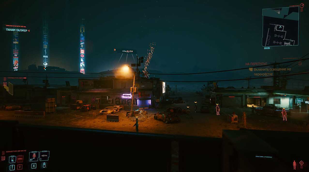 Сканируйте трансформатор, а потом электрощит. Дальше вам нужно выполнить просьбы Панам по включению электричества на перекрестке и подождать «стилетов». Когда они приедут, можно (по традиции Cyberpunk 2077) перестрелять всех из укрытия или по стелсу украсть ключи от машины Панам и угнать ее.