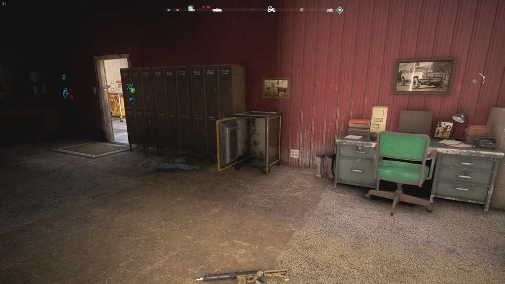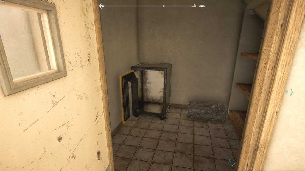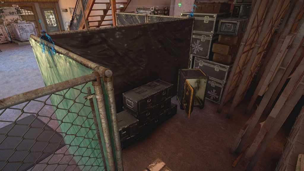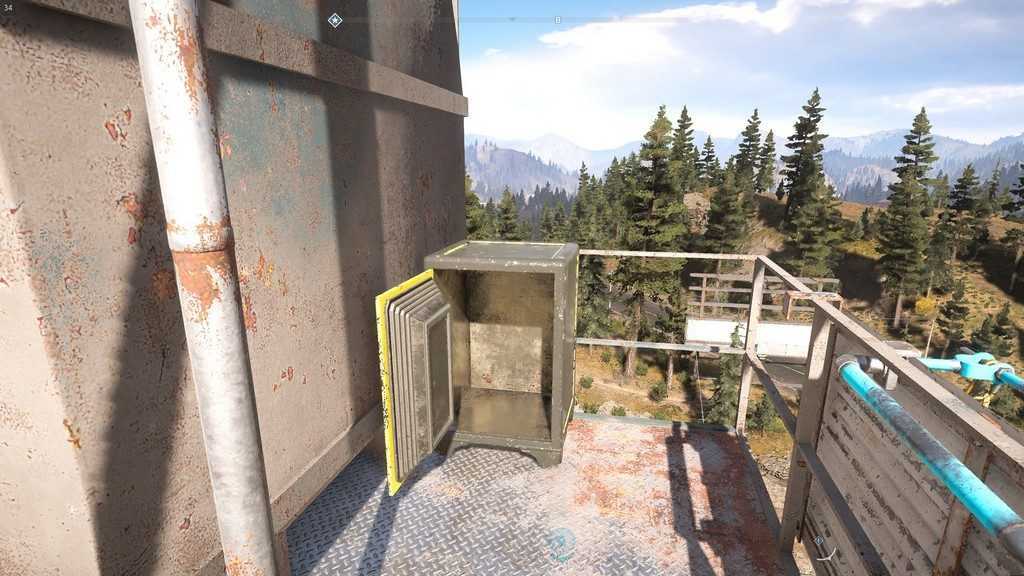 Забравшись на него по палетам, внутри вы обнаружите сейф.