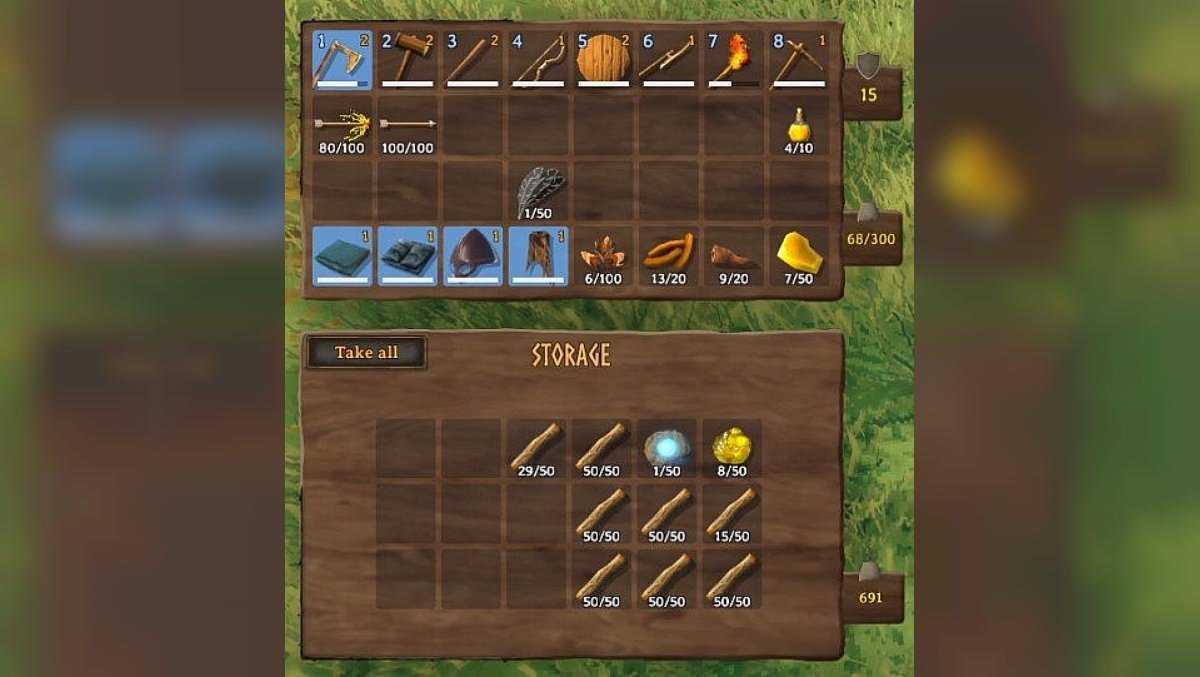 Как уже упоминалось, характер ограничен не только положением вашего инвентаря, но и весом, который вы можете нести. Со временем, когда предметов станет очень много, а ваши нужды и потребности возрастут, вы захотите привлекать больше ресурсов и тратить на это меньше времени. Вот где пригодится коляска! Общий вес тележки и земли оказывает значительное влияние на управляемость тележки, но при этом гораздо легче добыть больше ресурсов и вернуть их в деревню. Кроме того, сама коляска не имеет ограничений по весу, который она может перевозить, и содержит 18 ячеек для различных предметов.