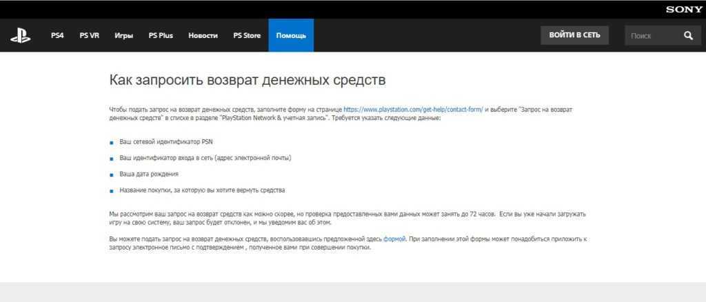 Инструкция как вернуть деньги за игру в Плейстейшен 4