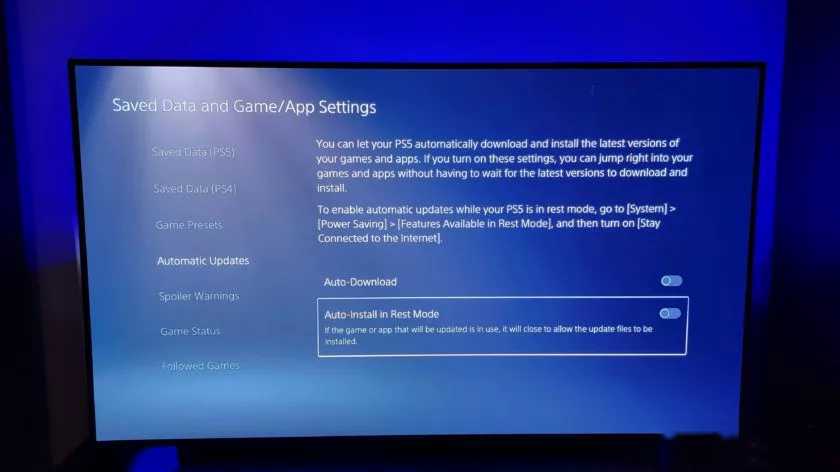 Выберите Автоматические обновления слева. Отключите автоматическую загрузку и автоматическую установку в режиме покоя , чтобы ваша PS5 не могла устанавливать обновления игры и предварительно заказывать загрузки без вашего разрешения.